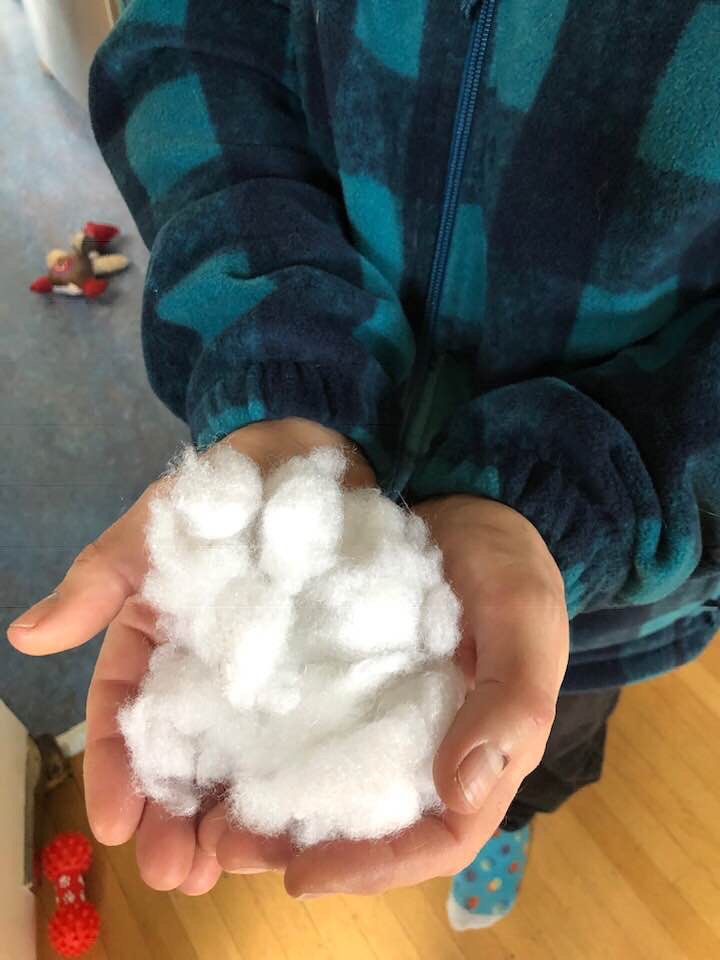 I picked up a ball of cotton stuffing