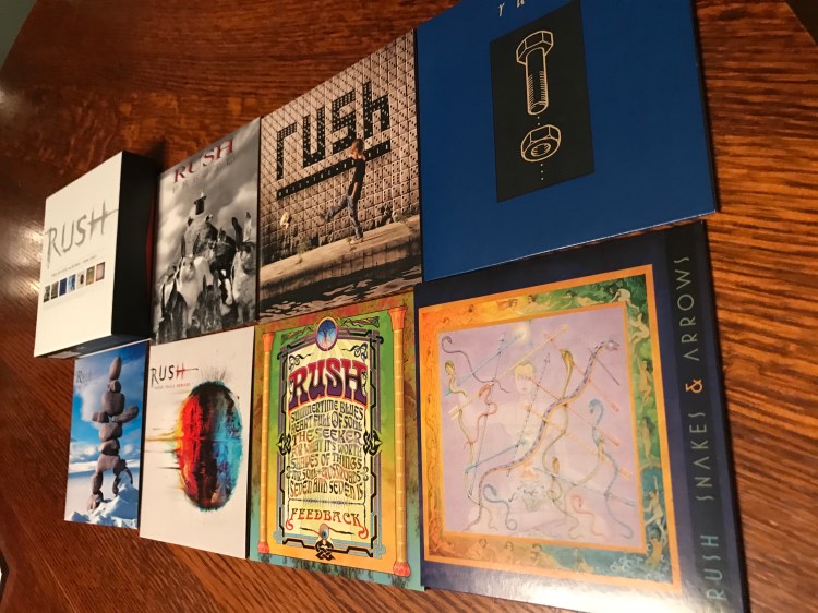 Apparently, there was a box set made especially for me, especially for this occasion, a collection of every studio album from 1989 to 2007, seven compact discs in all, released, perhaps, before the band knew that they would ever release another record, or, more likely, released after the band’s exit from the Atlantic record label. There would be only one more studio album after 2007, Clockwork Angels from 2012. So, as far as Rush’s studio albums are concerned, save for this 2012 record, which I have not yet heard, I have become a Rush Studio Album Completist.