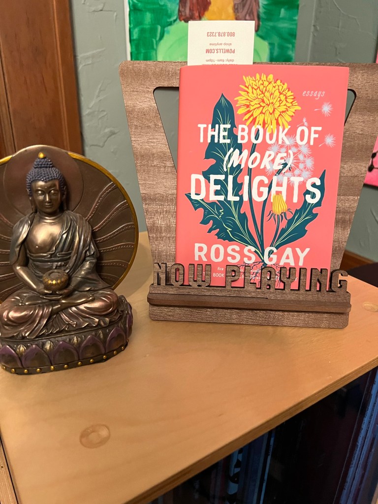 And I read some more in Ross Gay’s The Book of (More) Delights. This little volume was a Christmas gift from some very dear friends. They supposed (but did not know for sure) that I had already read Gay’s first volume, so they got me the second. I’ve read neither, but because these are essays, and not part one and part two of a narrative, fiction or otherwise, starting with the second book in the series does not appear to be a problem. From what I gather early on, these books are collections of short essays written over the course of a single year that simply set out to describe things that Ross Gay has found delightful or feels a great sense of gratitude towards, things that may or may not be obviously delightful or worthy of gratitude on the surface–so, there is an element of surprise, I think, when the author writes a rather joyous reflection on something that might have been kind of terrible to experience, like being fired from a shitty job, or attempting a birthday hike he realizes he is woefully unprepared for. But other essays here are kind of what you’d expect in a collection about delightful things, small unaccountable and personal joys–his best friend’s 50th birthday, the discovery of a walking-stick lending library in the woods of Vermont, the perfect notebook, the perfect spoon, or cup, free stuff (or shit, depending), cats and dogs in the neighborhood, you get the picture. The writing here is lively, funny, full of reverence and joy for the everyday. No structural secret sauce–these essays are arranged chronologically in the order they were written–so the book has a kind of diary effect–but not in the sense of a recording of what happened–but what might have been most interesting to him or most delightful on any given day.