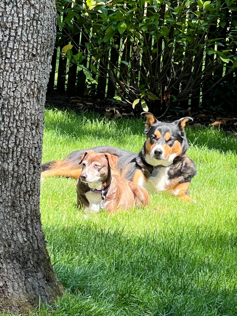 and then the dogs, one on either side of me