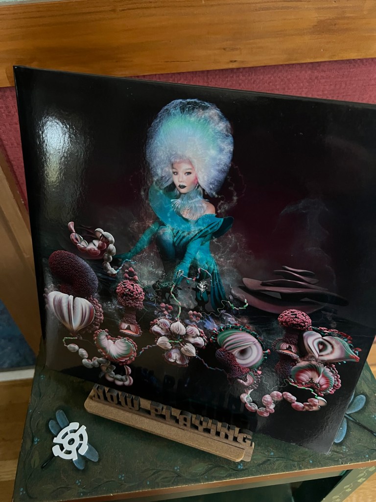 Notes on the vinyl edition: Fossora, One Little Independent Records, 2022, 180 gram black vinyl double record. Given the meditative nature of the music on this album, I would hope that the pressing would be pristine, but this one is messy, places intermittently when there’s noise and distortion. At first I thought it was my headphone amp–and it was. I don’t recommend battery powered headphone amps. When the battery goes everything sounds like shit. But then, listening on the speakers, still, intermittent distortion–and the record and stylus are clean. I don’t know why I didn’t take this one back to the record store after I bought it. If this is an album on your list, I’d recommend buying the CD–but for the album art. One of the most beautiful album covers ever. The only Björk album I have on vinyl. Maybe that’s why I kept it.
