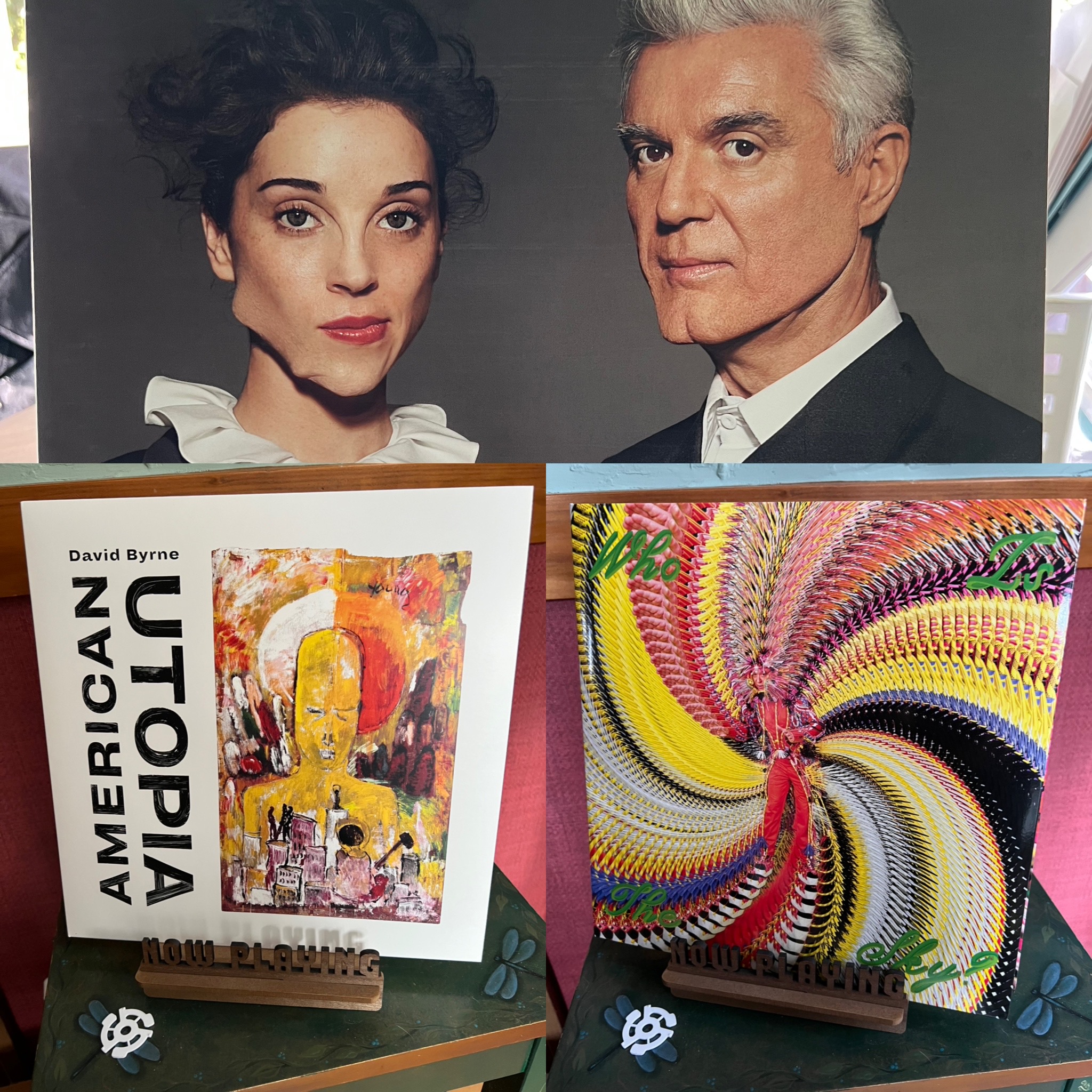 Notes on the vinyl editions: Love This Giant, Todo Munda Ltd., 4AD Records, 2012, black vinyl. American Utopia, Todo Munda Ltd., Nonesuch Records, 2018, black vinyl. Who is the Sky? Matador Records, 2025, lime green vinyl.