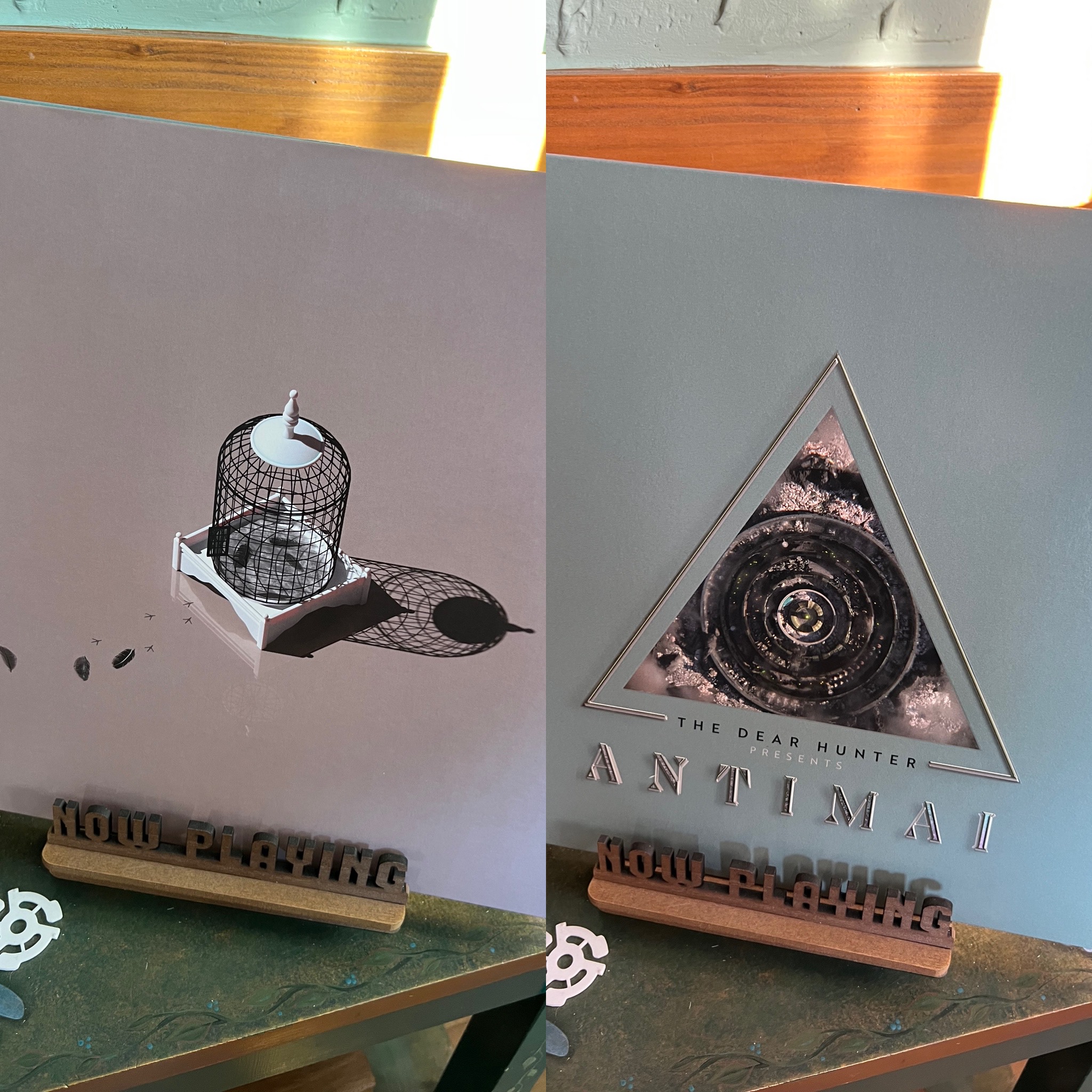 Notes on the vinyl editions: Migrant Returned, Equal Vision Records, 2023, red and pink splotch design on clear double vinyl. Antimai, Cave and Canary Goods, 2022, clear double vinyl.