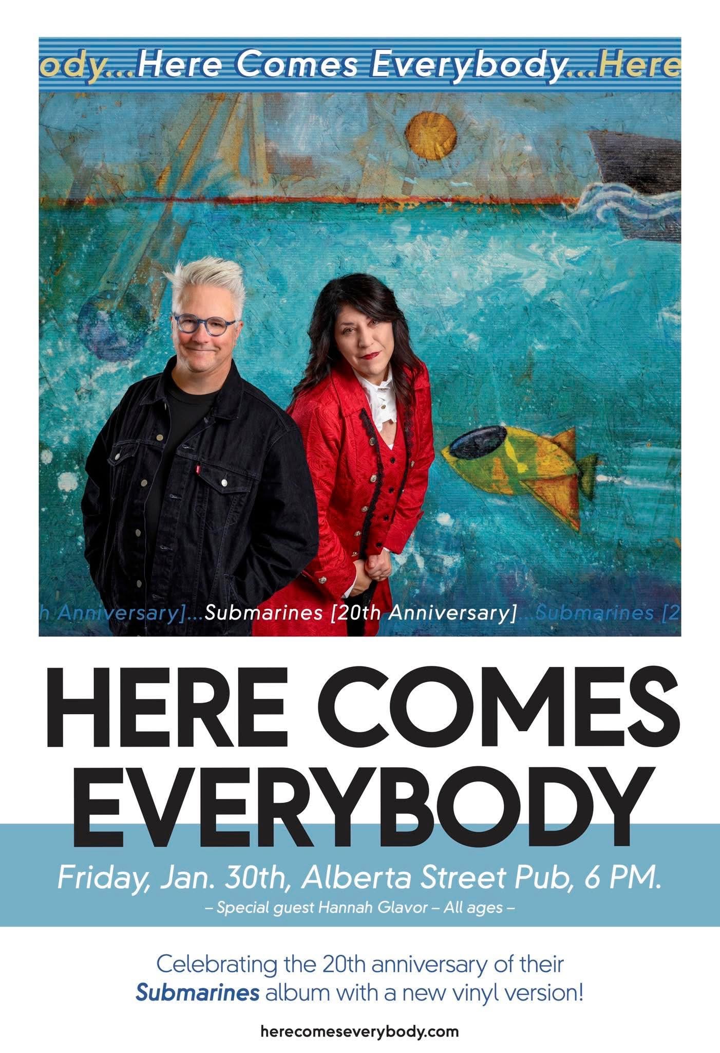 I have a show tonight with Here Comes Everybody, a band my wife and I formed together 40 years ago. This show is remarkable or significant for a number of reasons. It’s a record release party, as we celebrate and release on vinyl for the first time a 20th anniversary edition of our album Submarines. It’s the first gig we’ve done as Here Comes Everybody with a full band in ten years. And finally, it reunites the band members that played together for the first time in HCE at the tail end of 1986 and into 1987, the same band members who played together for the first time ever when they were barely out of their teens in my parents’ garage. It has been wild and wonderful to reunite musically with these players, neither of whom played on the Submarines album, but who have in recent rehearsals nevertheless added their signature and expert touches to make the tunes feel new and fresh. This is just a short little reflection about how deeply grateful I am to the musicians that have been so kind and generous as to help René and I flesh out our crazy musical ideas now for decades. We have been so lucky. There has not been a single musician we’ve ever worked with in Here Comes Everybody that did not significantly enrich our lives and our music. But in this moment, I’d like to speak of my gratitude specifically for these few: